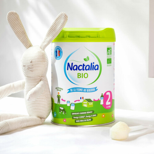 À partir de la diversification, des laits bio 2e et 3e âge, tels que ceux élaborés par Nactalia Bio, participent à l’équilibre alimentaire de bébé, en relais ou en complément de l’allaitement. La formule Nactalia Bio favorise le confort digestif de bébé, avec des résultats cliniquement prouvés.